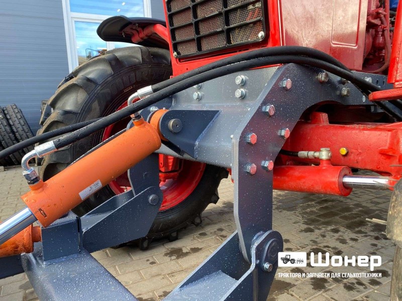 Крепление реализовано через болтовое соединение к передней раме трактора. Такой способ монтажа обеспечивает жесткую фиксацию навески и равномерное распределение нагрузки на несущую конструкцию. Установка не требует сварочных работ или серьезных модификаций трактора – все продумано для быстрого монтажа и демонтажа.