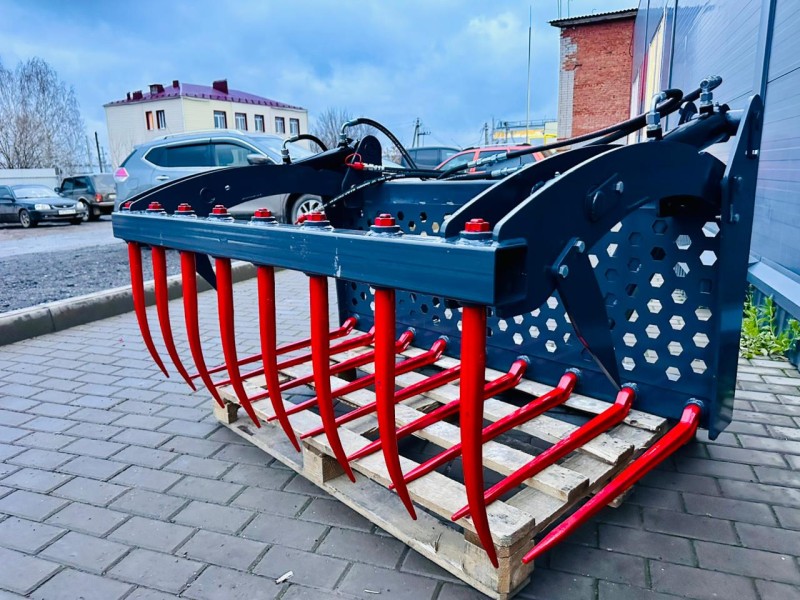 Регулярное техническое обслуживание значительно продлевает срок службы захвата. Необходимо периодически проверять состояние гидроцилиндров, шлангов и соединений, своевременно подтягивать болтовые соединения и смазывать подвижные части. Металлические элементы конструкции покрыты защитным покрытием, но при появлении сколов краски рекомендуется обработать поврежденные участки, чтобы предотвратить коррозию.